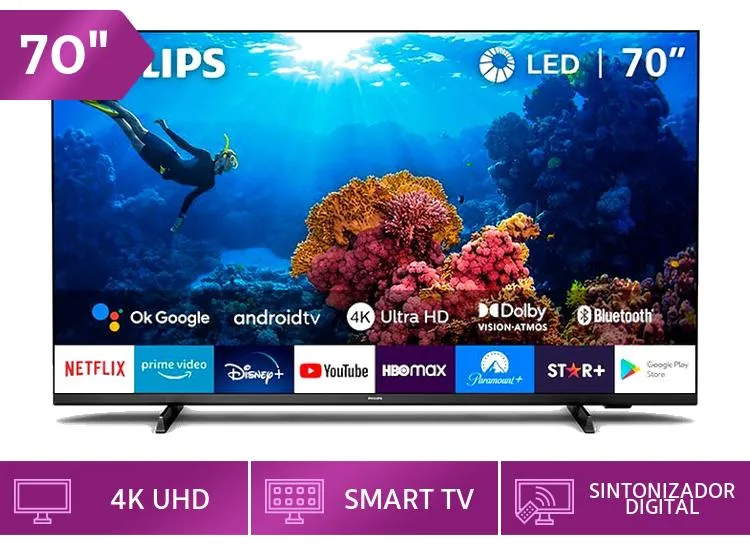 TELEVISOR SMART TV PHILIPS 4K ULTRA HD 70 70PUD7406 ANDROID TV PHILIPSS/2,199