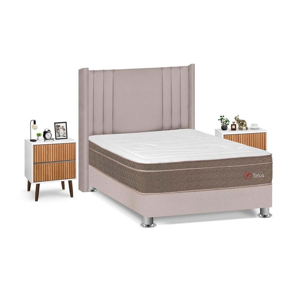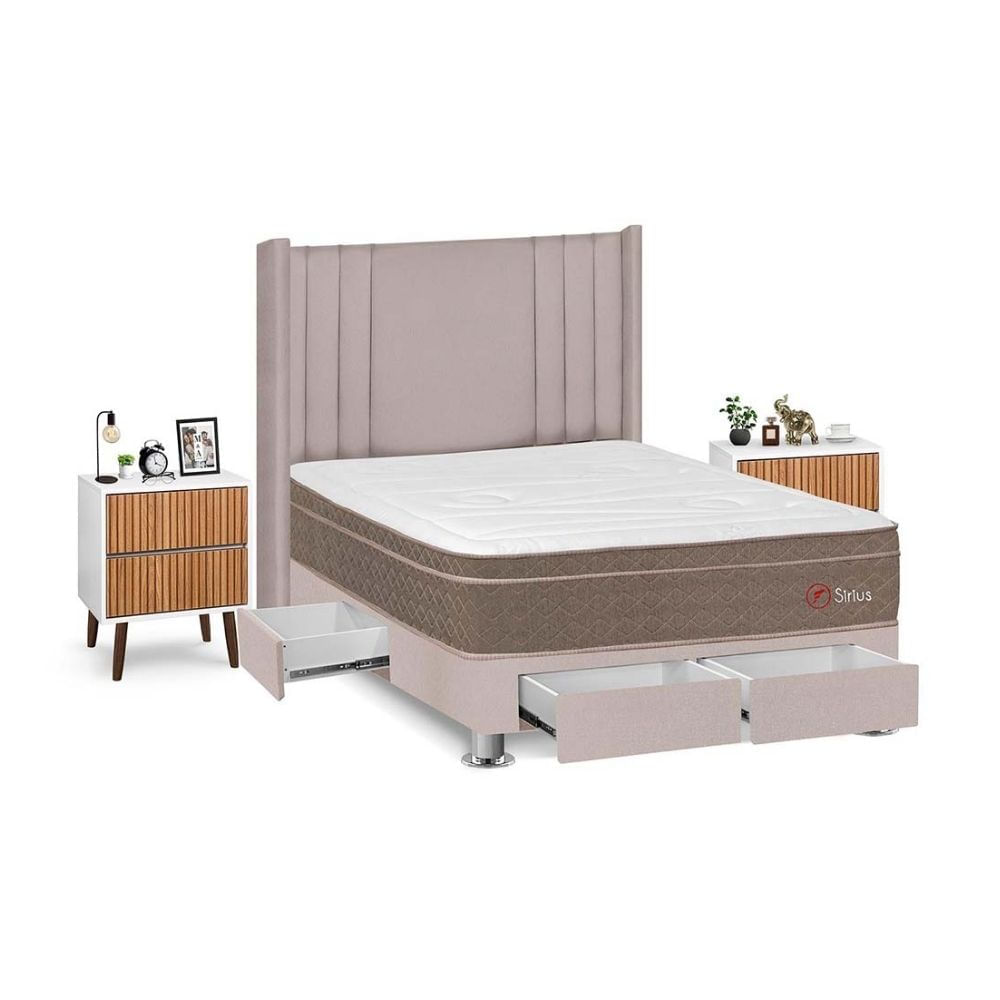 Juego de Dormitorio Forli Sirius 4 Cajones 2 Plazas Beige + Velador MilanS/3,665