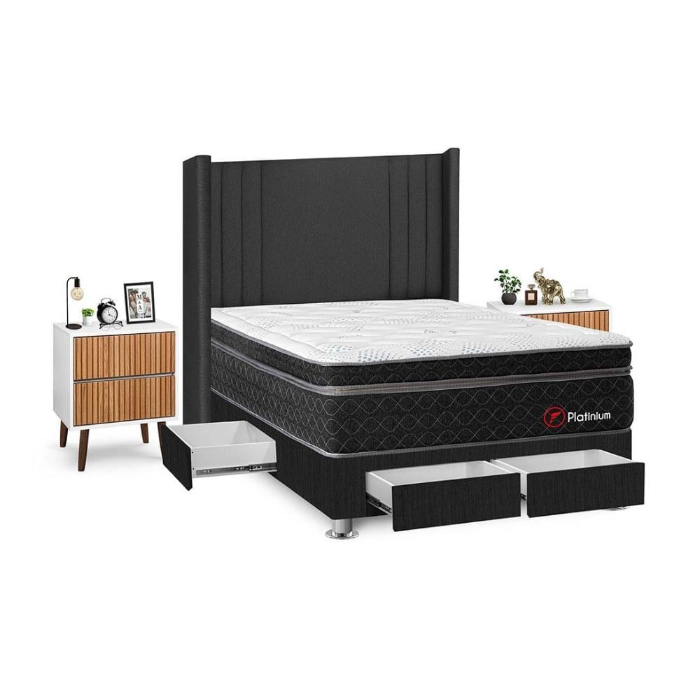 Juego de Dormitorio Forli Platinium 4 Cajones 2 Plazas Gris + Velador MilanS/4,498