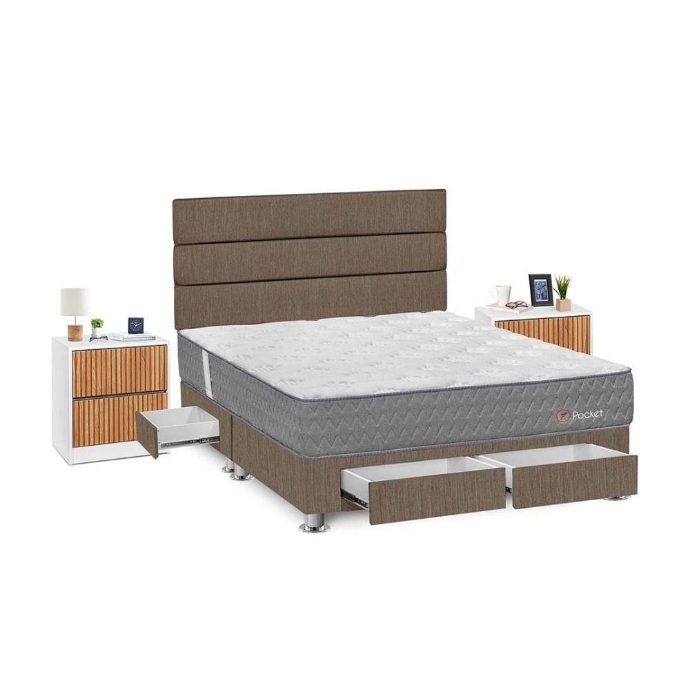 Juego de Dormitorio Forli Pocket 4 Cajones Queen Marrón + Velador RomaS/3,665