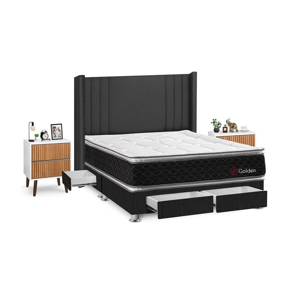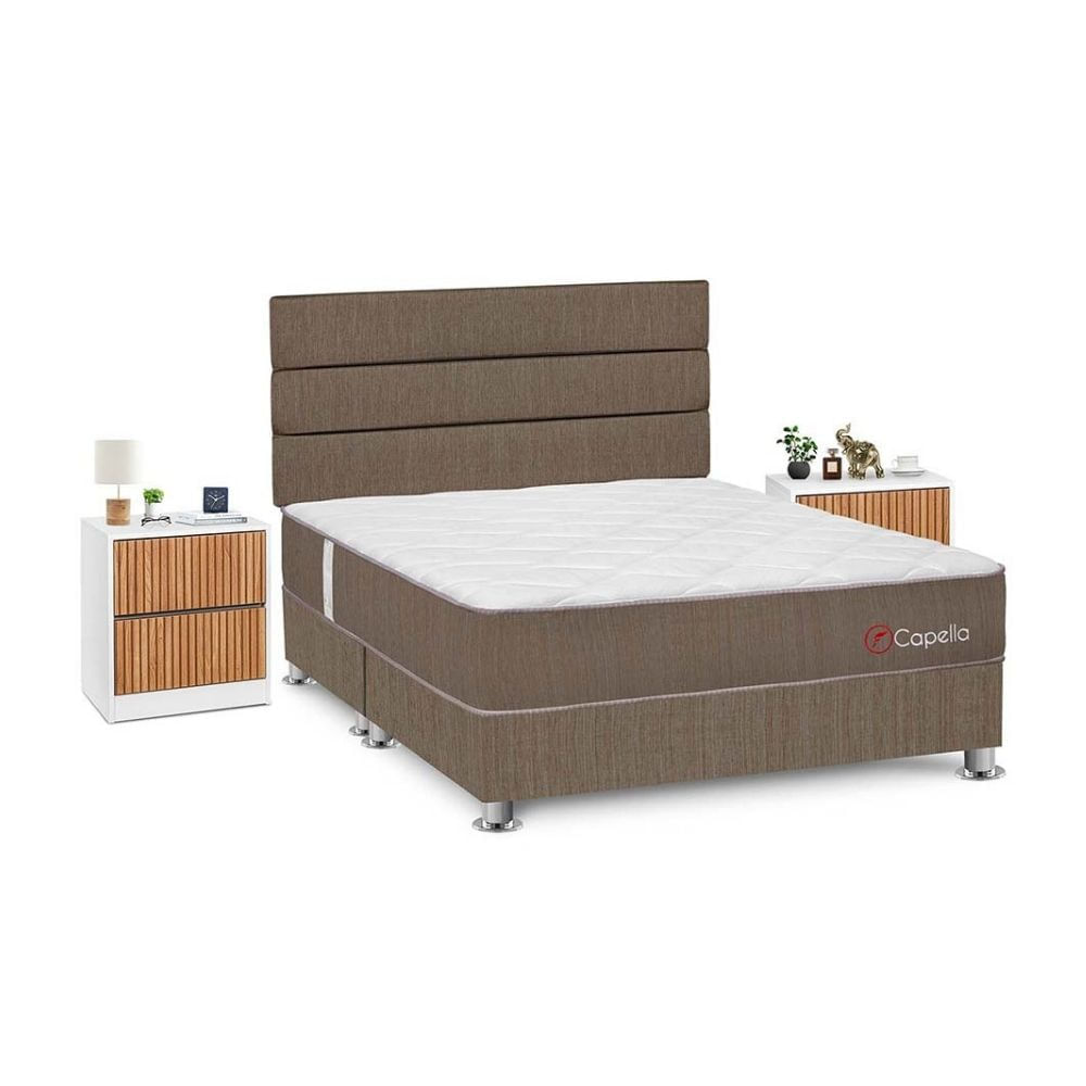 Juego de Dormitorio Forli Golden 4 Cajones 2 Plazas Beige + Velador MilanS/3,998