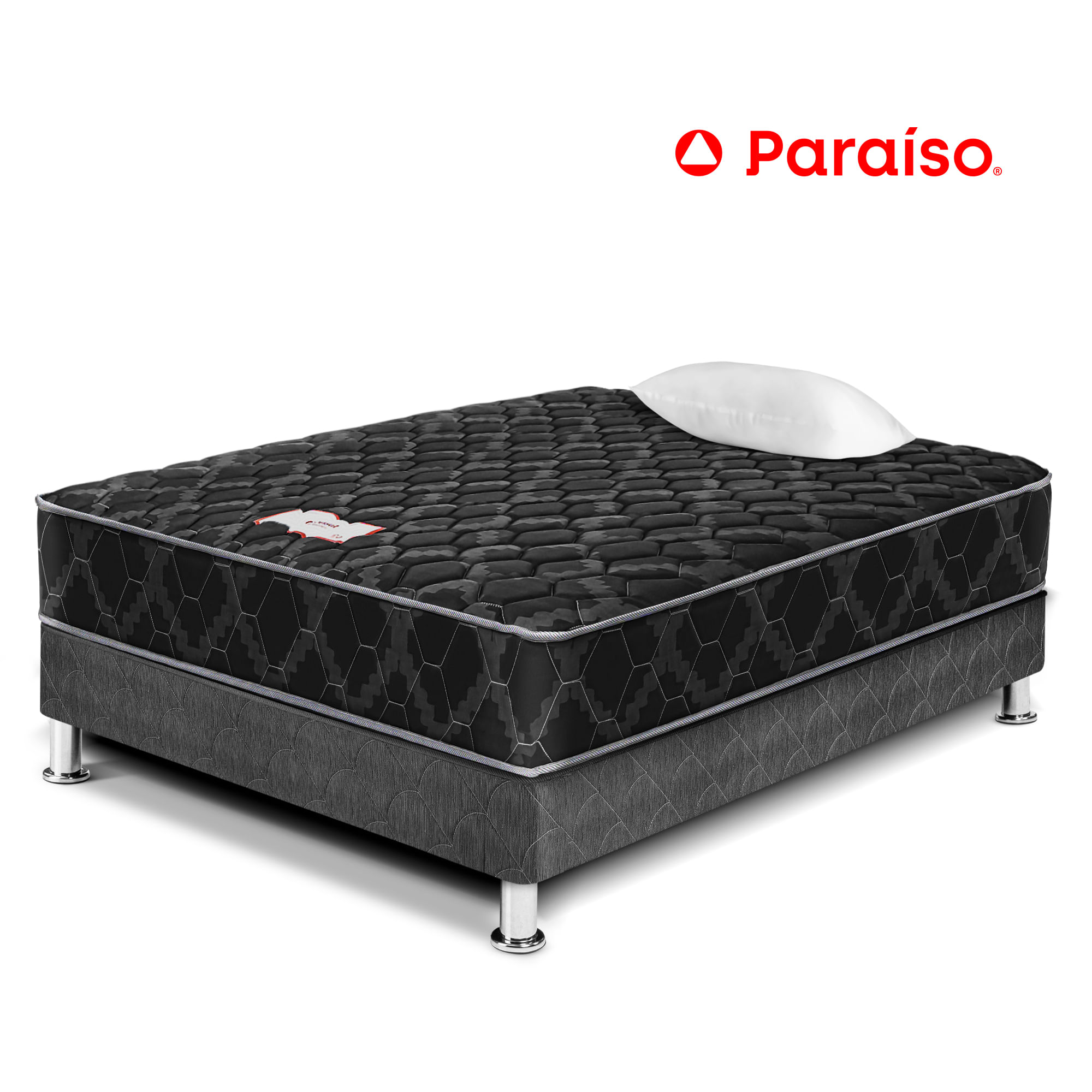 Cama Box Tarima PARAISO Consul Black 1.5 Plazas + 1 Almohada + ProtectorS/349