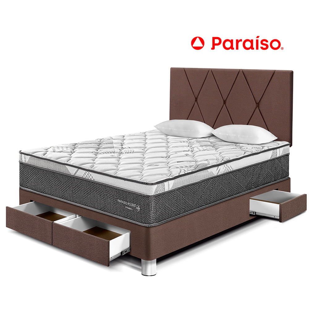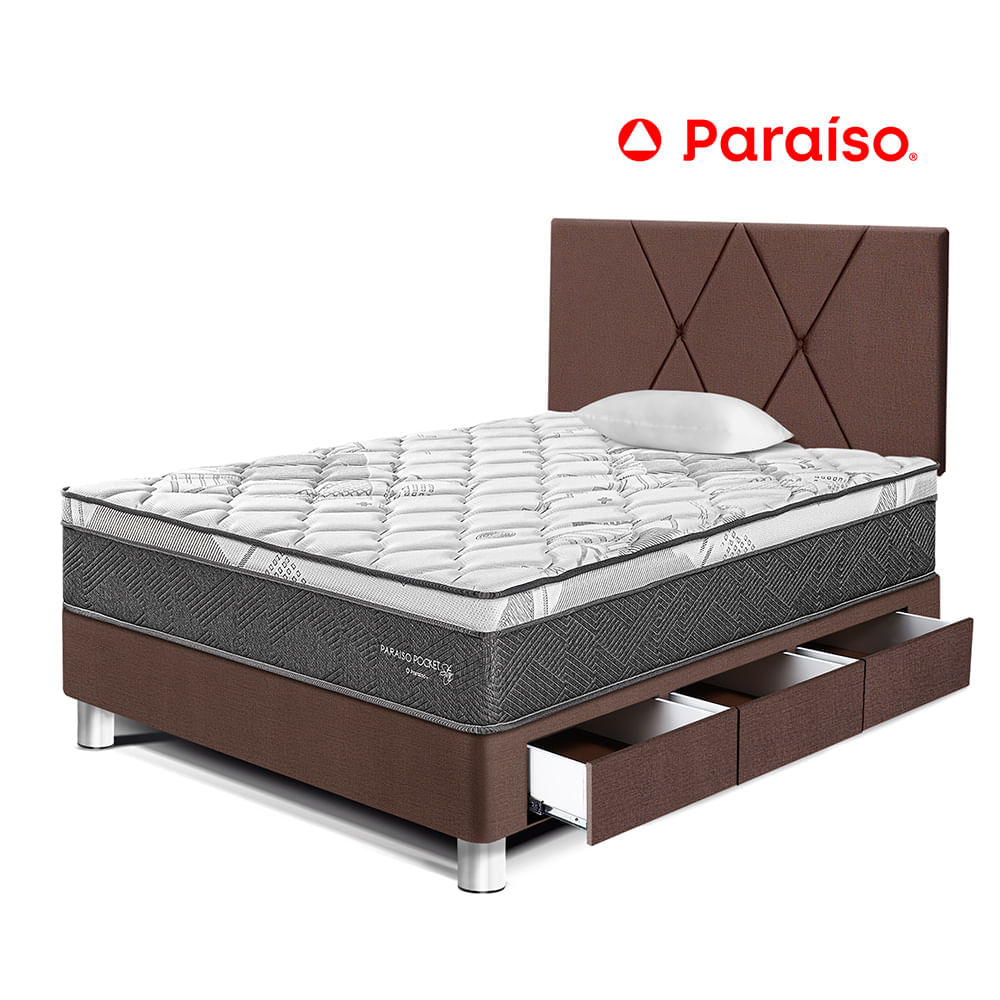 Dormitorio Paraiso Pocket St Cajones 1.5 Plazas Cabecera Loft ChocolateS/1,259