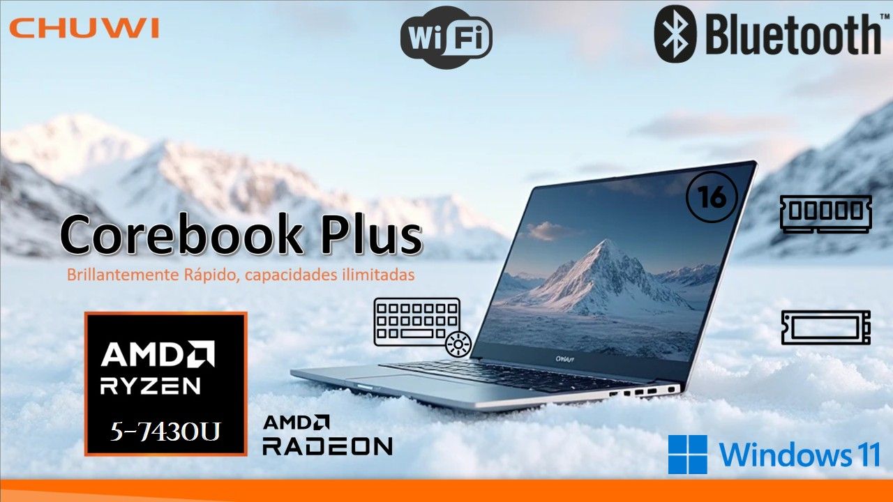NOTEBOOK CHUWI 16 RYZEN 5-7430U 16GB DDR4 512GB M.2 WIN 11 + BOLSO TEROS CHUWIS/1,579