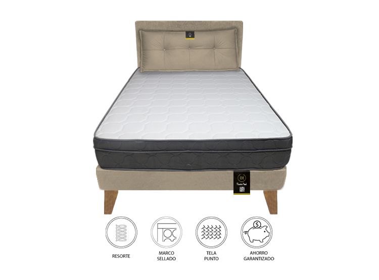 Cama tapizada Premium Lujo Beige 1.5 Plz Personaliza el color + puff gratis MUEBLES MACRUMOS/1,199