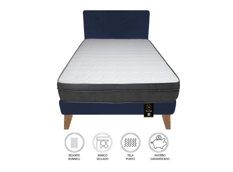 Dormitorio Turin Slim 2 Plz + Cabecera + Almohadas - Azul Marino BARAKA HOMES/829