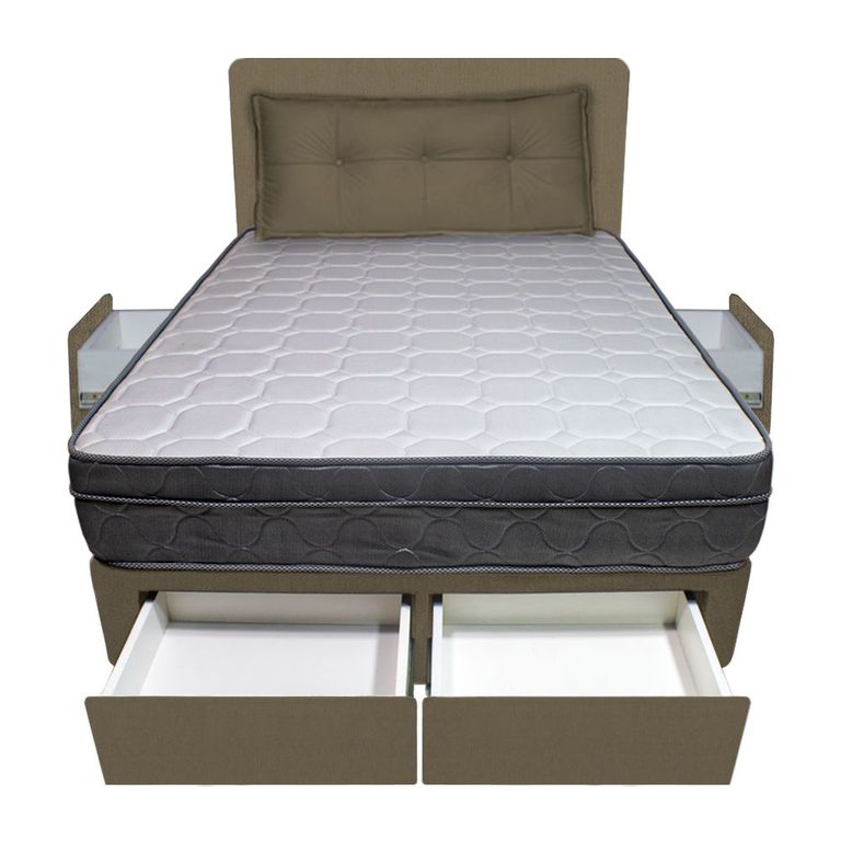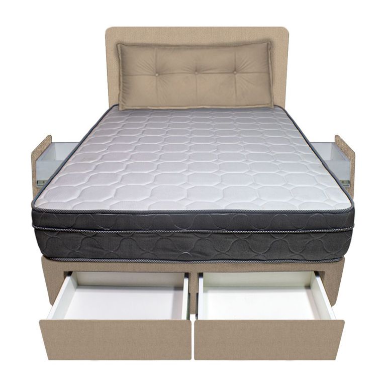 Dormitorio Turin + 4 Cajones Queen + Cabecera + Cojin - Beige Claro BARAKA HOMES/1,739