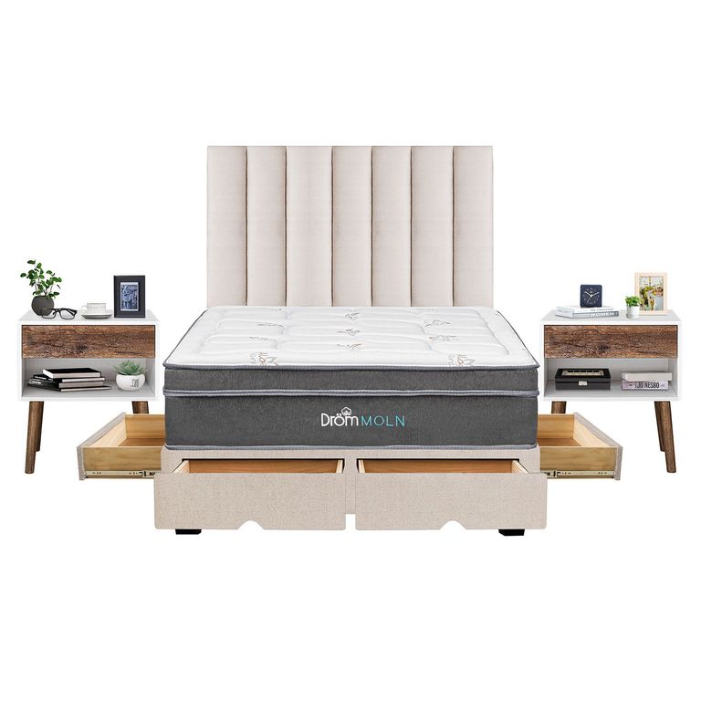 Dormitorio Kamári 2 Plz con Cajones + 2 Almohadas Visco + Protector COLCHONES LATIN DREAMSS/2,529