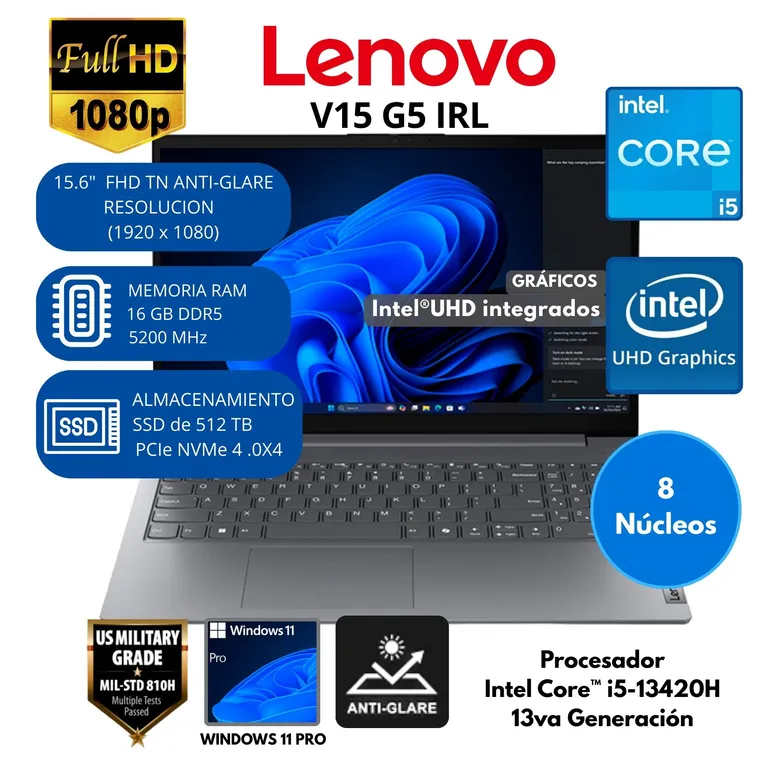 Laptop Lenovo Intel Core i5(V15 G5 IRL) RAM 16 GB SSD 512 GB 15.6'' FHD Windows 11 LENOVOS/2,399