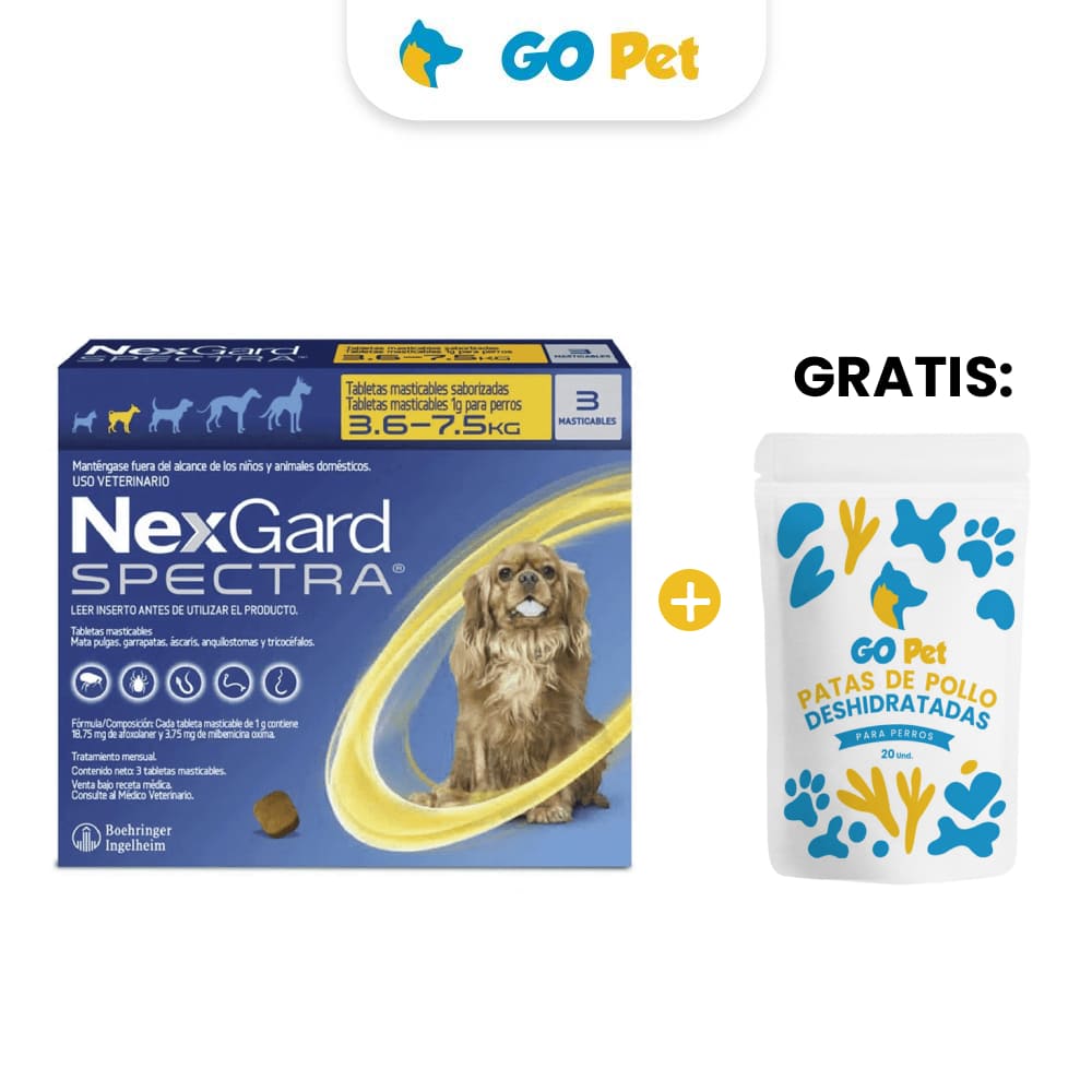 Nexgard Spectra S x 3 Tabletas 3.5 a 7.5 Kg y GRATIS Patas de pollo deshidratadas x 20 undS/130