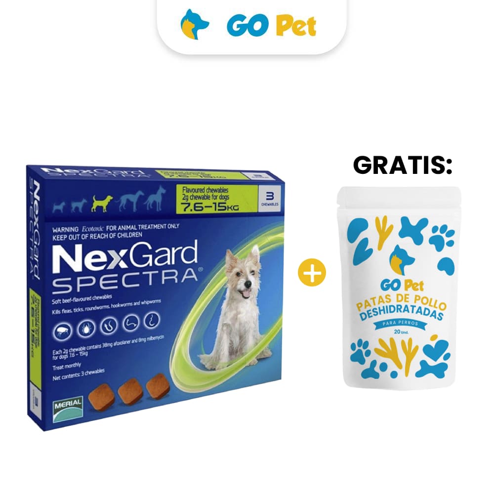 Nexgard Spectra M x 3 Tabletas 7.5 a 15 Kg y GRATIS Patas de pollo deshidratadas x 20 undS/136