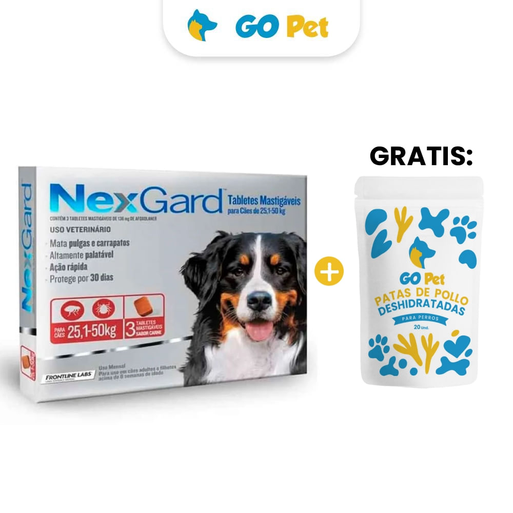 Nexgard Spectra XS x 3 Tabletas 2 a 3.5 Kg y GRATIS Patas de pollo deshidratadas x 20 undS/76