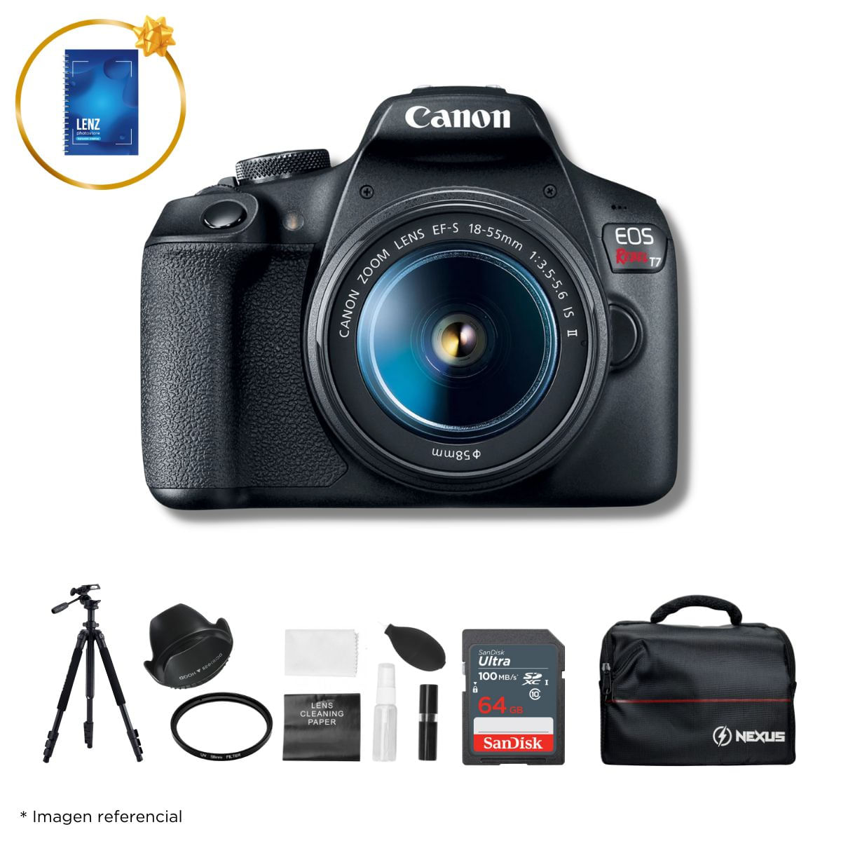 Cámara Canon EOS T7 + Lente EF-S 18-55mm f/3.5-5.6 IS II + Kit Ultimate (N)S/2,399